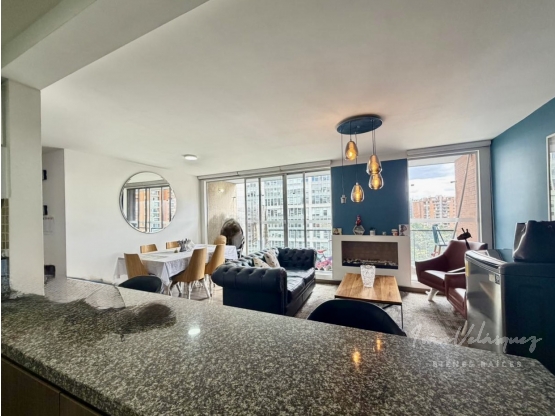 Amplio acogedor e iluminado apartamento en piso 9 esquilero exterior, 103m2, antigüedad 5 años, cuenta sala-comedor con chimenea y balcón de 4m2, 3 alcobas, 3 baños, estudio o estar de tv, cocina integral abierta, zona de lavandería independiente. 2 parqueaderos independientes y depósito.